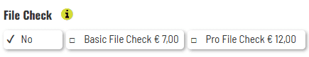 By purchasing the Professional File Check our experts will check your file and will contact you in case of critical issues. You will be offered different solutions and suggestions for a better printing result. All the functions of the Basic File Check service are included.